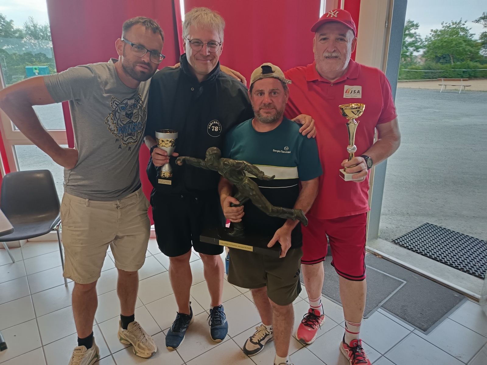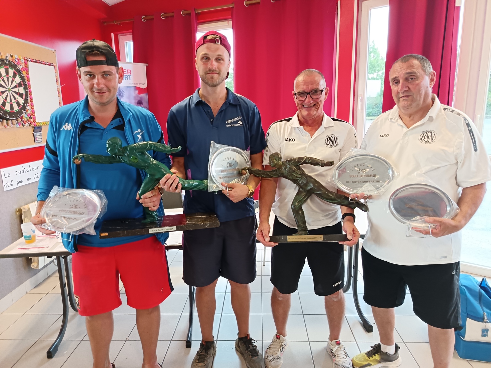 -L’UBP s’est incliné en 1/4 de finale du championnat des AS 3&4. Opposé à VICHY, la première phase voyait les Sarthois prendre un net avantage 12-2. Après les épreuves de point et tir, l’écart se réduisait (16-10). A la dernière phase, seule la doublette l’emportait (20-20). La mort subite était fatale pour les joueurs de l’UBP qui s’inclinaient 4-5. Le lendemain, VICHY se qualifiait pour la finale face à La Motte Servolex (21-19). -Le 27 juillet 2025 à NOYEN, la BSN organisait un 32 doubles promotion. Des équipes venant de Vendée, Loire Atlantique, Calvados, Eure et Loir, des Yvelines et Sarthoises se disputaient le challenge Emile LEMASSON. C’est l’équipe AUBLE ( Belhomert,) qui l’emportait face à LAMBERT O. (Noyen) en finale. Dans le complémentaire victoire de l’équipe MINISSINI (Porcheville). Dans le numéro 3, l’équipe COURAUD de Basse-Indre s’impose. Bravo et merci aux organisateurs et aux bénévoles pour la réussite de cette compétition. Résultats n°1 n°2 n°3.