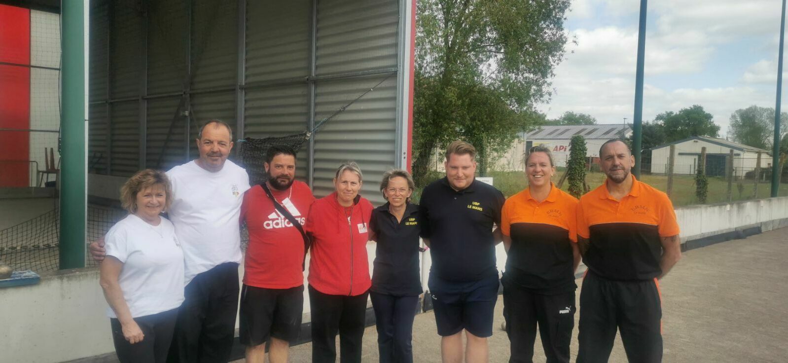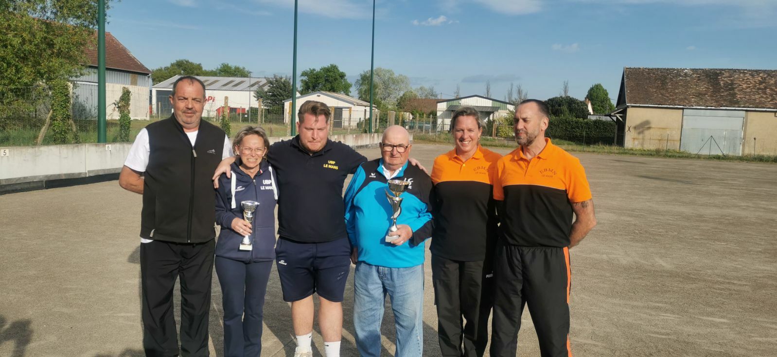 Au boulodrome de la Suze/Sarthe, organisé par le club du président André BRASSET, s’est déroulé le championnat départemental mixte D3/D4 qualifiant 4 équipes pour le régional qui aura lieu le 25 mai au boulodrome de l’UBP au MANS. 21 équipes au départ, et après les parties de poules il n’en restaient que 14. Les 1/4 de finales voyaient des parties très équilibrées et au final, les quatre équipes qualifiées sont : HOULBERT Graziella et Hans, SAINTY Céline et Gianni, ROUSSEAU Vanessa et Cédric et PINAU Christina et Christophe. Merci au club de la Boule Suzéraine et à tous ses bénévoles pour l’organisation impeccable de cette compétition, à Sébastien BOUHOURS pour en avoir assurer l’arbitrage. Dans l’album photos, vous verrez les résultats et les photos des qualifiés.