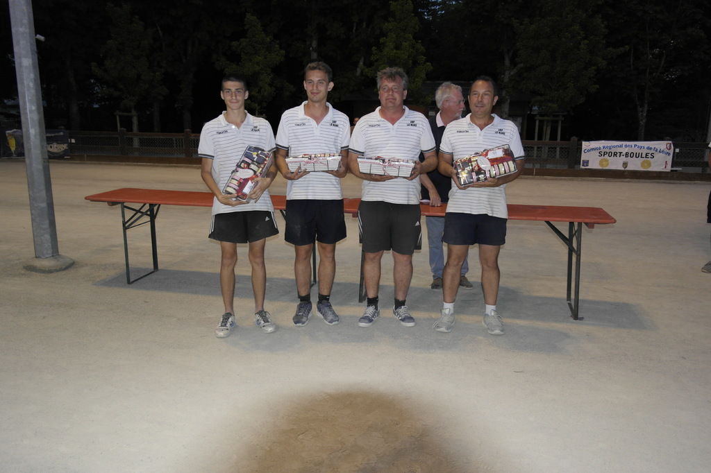 Le mardi 14 juillet 2015 au Pouliguen c'est déroulé un concours 16 quadrettes toutes divisions et un 16 quadrettes 3ème et 4ème divisions.Dans le toutes divisions c'est l'équipe LEBRETON qui s'impose face à l'équipe CHIQUET de Chatellerault. Dans le 3 et 4 ce sont les Pouliguennais de l'équipe DELAVERGNE qui remporte la compétition contre les joueurs de Basse-Indre BLANCHARD et enfin dans le complémentaire 2 équipes du Pouliguen ce sont affrontées CHAMOUILLET remporte le titre face à l'équipe FOUCHER
