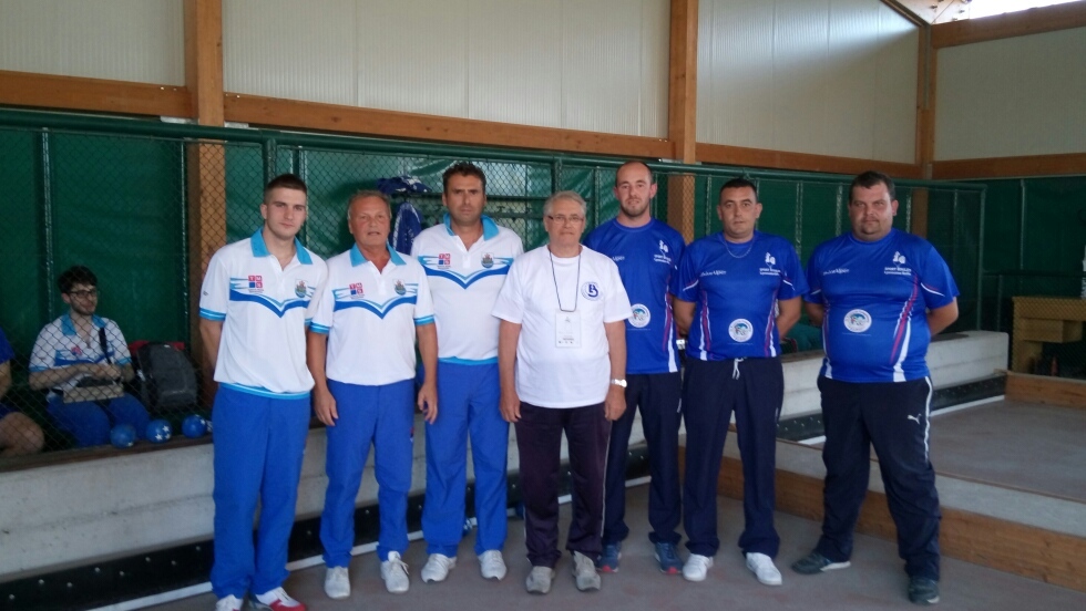 Ensuite, les français ont rencontré l’équipe tête de série de leur groupe, San Marin. Ils se devaient de l’emporter pour pouvoir continuer à espérer une qualification en quarts de finale. Tout commençait à nouveau très bien avec une victoire du triple 12 à 5 (peut-être grâce à la cohésion d’équipe dont parlait Sylvain Le Boulanger dans une interview sur le site FFSB http://www.ffsb.fr/page.php?P=fo/public/menu/archives_news/news_fiche&newsId=3232). Ensuite Eddy Rouault devait s’imposer en simple, à la fois pour apporter la victoire à son équipe et aussi pour conserver une chance dans le Championnat simple. Il était opposé au joueur expérimenté Enrico Dall’Olmo, 4ème des derniers mondiaux en simple en 2015 et qui avait battu le double français Eddy Rouault et Sylvain Le Boulanger dans la rencontre pour la 3ème place lors des derniers Jeux Méditerranéens. Eddy signe une excellente performance et s’impose 12 à 1. Dans le dernier double, important en cas d’égalité pour déterminer le classement, les joueurs français s’inclinent malheureusement 11 à 12.