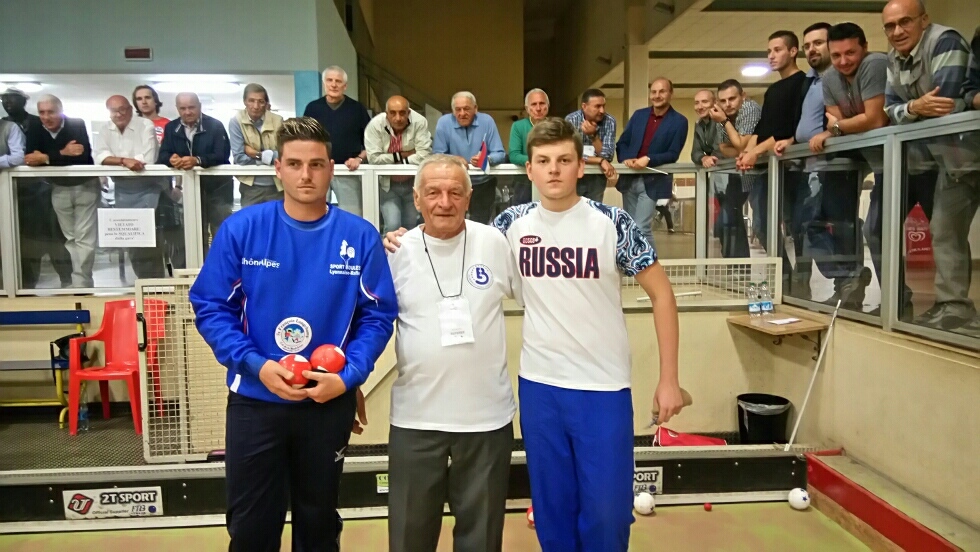 Dans la compétition simple -23 ans, Aurélien Corbihan débutait dans une compétition internationale. Opposé dès la première rencontre à la tête de série de son groupe, le joueur de San Marin, Aurélien, peut-être un peu tendu, a subi le jeu performant de son adversaire et s’est logiquement incliné 0 à 12. Il devait se reprendre pour espérer se qualifier pour les quarts de finale (rappel : les 4 premiers de chaque groupe sont qualifiés pour les quarts de finale). Ce qu’il fit de fort belle manière en s’imposant face au chypriote 12 à 10, puis face au russe 12 à 4. Il s’inclinait en fin de soirée face au suisse 0 à 12, autre tête de série de son groupe.