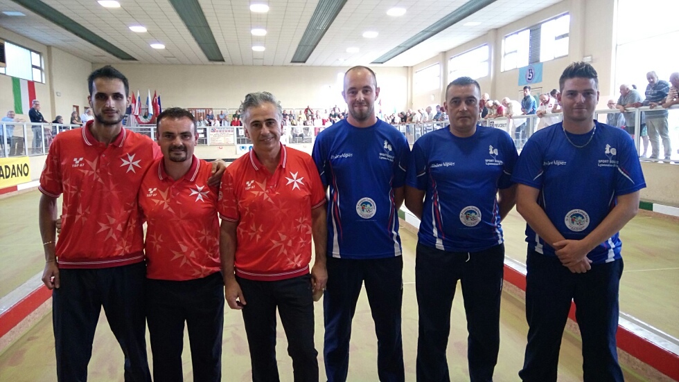 En équipe, les joueurs français ont rencontré Malte. Ils s'inclinent 7 à 12 en triple et 6 à 12 en simple. Ils rencontreront l'Allemagne pour la septième place ce samedi. La finale opposera l'Italie (qui a largement battu San Marin) à la Suisse.