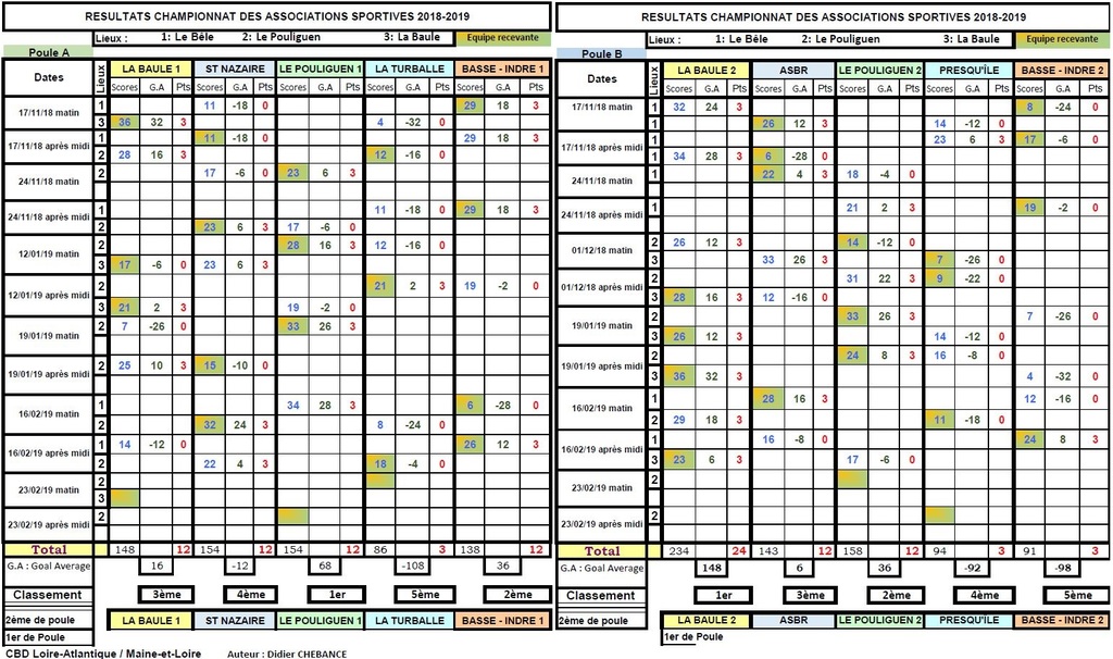 Toutes les équipes de la poule A et poule B jouaient ce samedi 16 février.