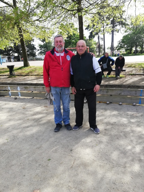 1/4 de finale à 15 h30 les premiers de poule rencontrent les 2 deuxièmes et 4 éliminés : Dera Jean Jacques ( Le Pouliguen) - Petit Loic ( Rezé) - Haingue Joseph (La Turballe) - Boudaud jacky ( Rezé)