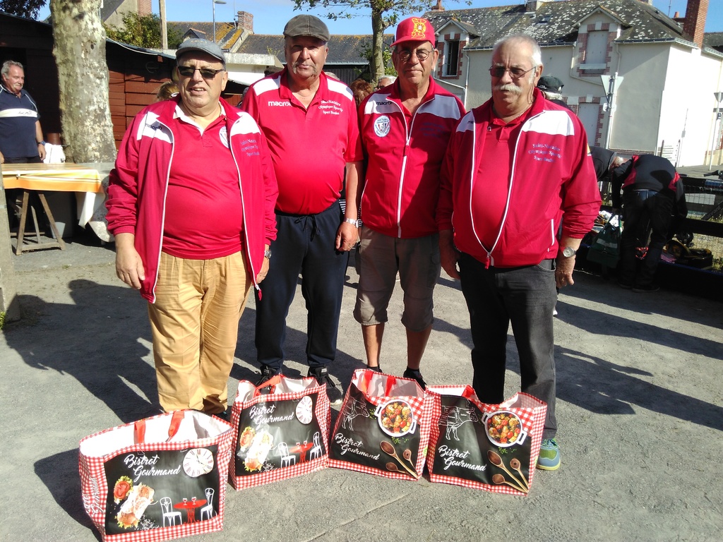 Mercredi 12 juin au Croisic se retrouvent 12 équipes vétérans pour le traditionnel concours vétéran. Grace à un temps clément les parties ont pu se dérouler sans pluie et à ce jeu c'est l'équipe de Saint - Nazaire (Michel Mangot, Christian Gueffier, Jean Louis Marquer et Serge Pinson ) emmené par un Christian en pleine forme qui remporte le concours en gagnant les 4 parties. Félicitation les champions.