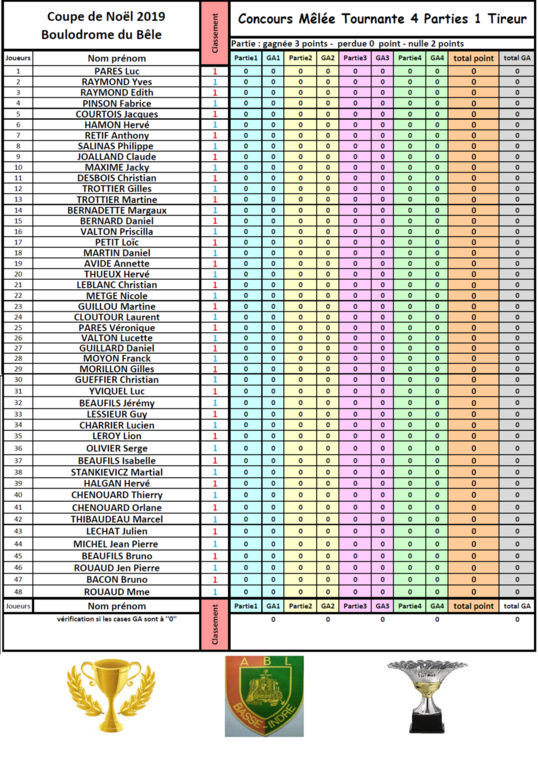 Gérer par informatique un concours à la mêlée tournante avec 1 tireur à chaque partie sur 4 tours pour 48 participant(e)s
