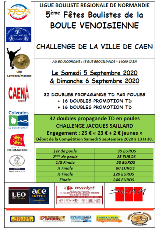 Le président du CBD 14 50 nous demande de vous communiquer le grand prix de la ville de CAEN