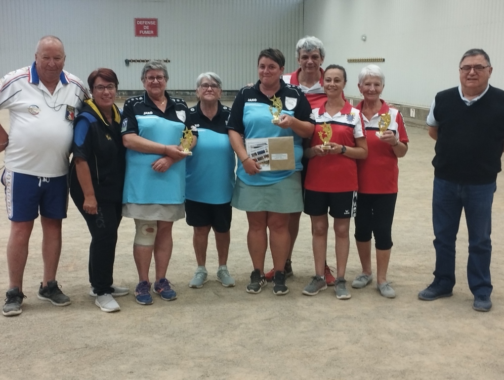 En F3, à l'issue d'une poule de 5, ceux sont Priscilla Valton, Danielle Chevallier et Lucette Valton (Le Pouliguen) qui s'imposent 12 à 6 face à Christelle Amiant, Valérie Petit et Danielle Lambert (Larçay).
