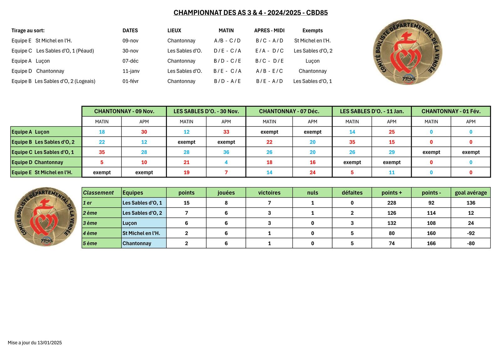 Retrouvez les résultats et le classement du championnat de AS 3&4 après la 4ème journée.